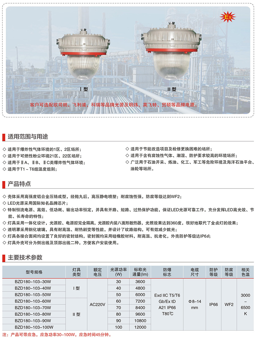 产品中心 LED防爆灯系列 BZD180-103系列防爆免维护LED照明灯(IIC)