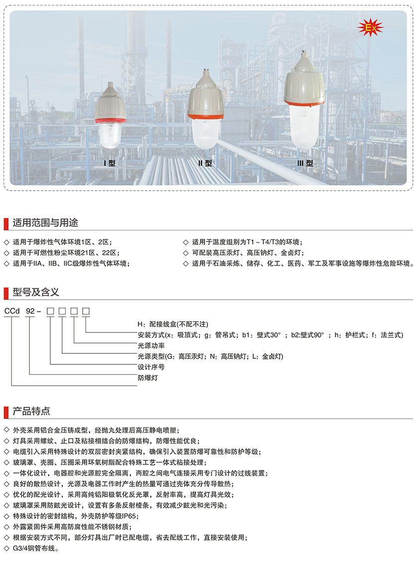 产品中心 厂用防爆灯具系列 CCd92系列防爆照明灯(IIC)