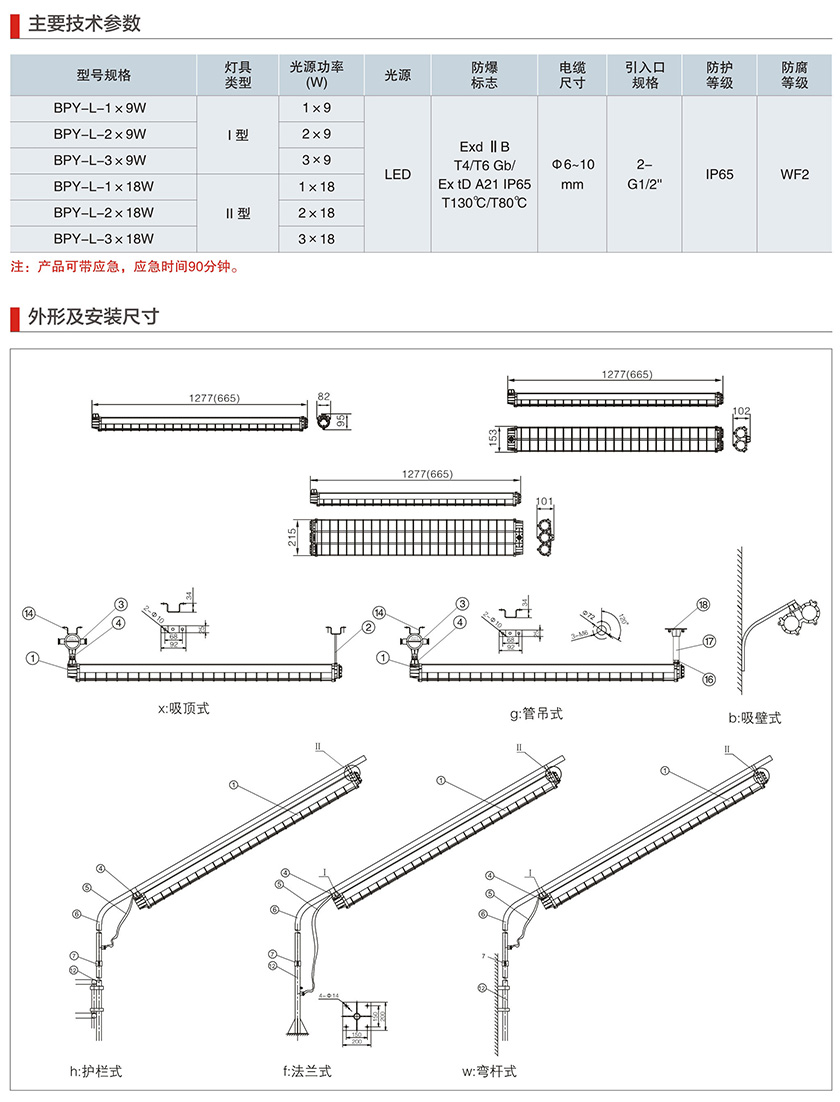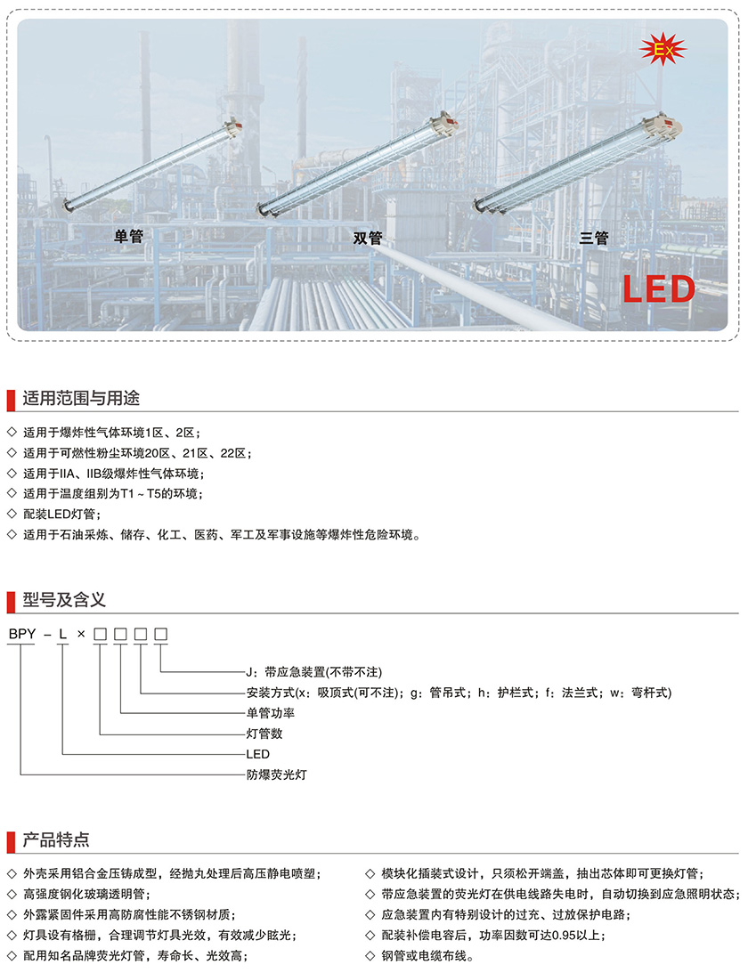 产品中心 厂用防爆灯具系列 BPY-L系列防爆LED荧光灯(IIB)
