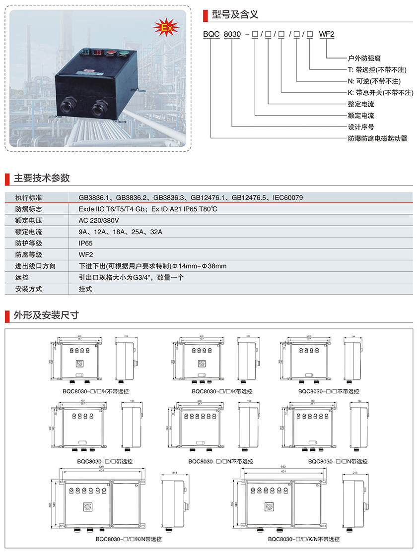 产品中心 防爆防腐电器系列 BQC8030系列防爆防腐电磁起动器(IIC、Ex Td)