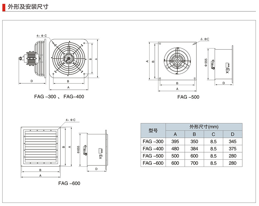 产品中心 防爆风机系列 FAG系列防爆壁式排风扇(IIB)