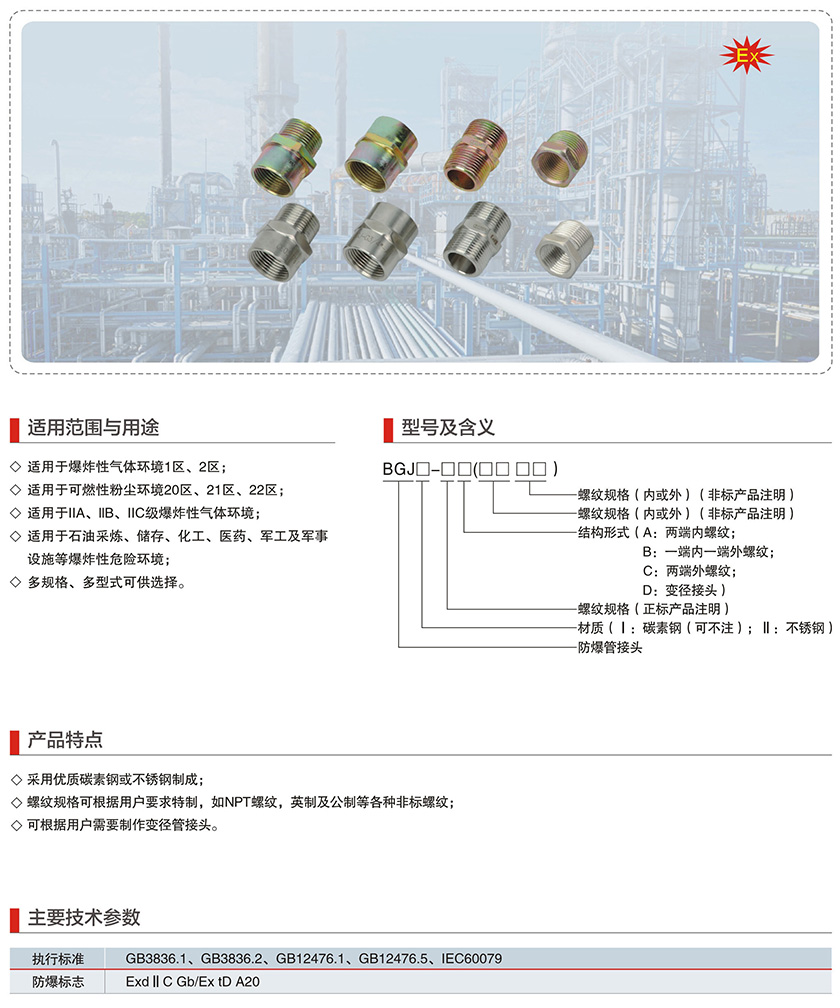 产品中心 防爆管件系列 BGJ系列防爆管接头(d II)