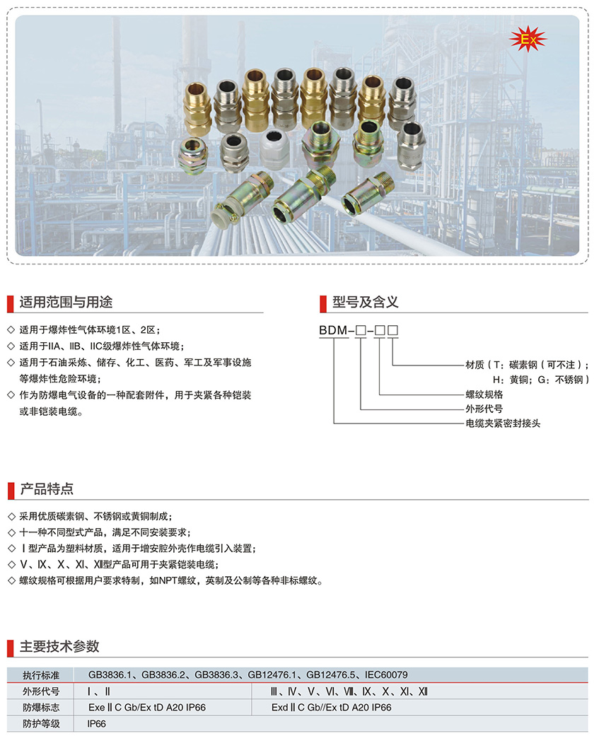 产品中心 防爆管件系列 BDM系列电缆夹紧密封接头( II、e)